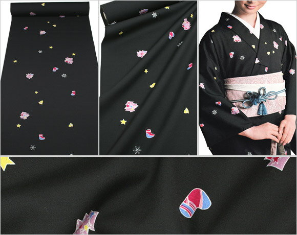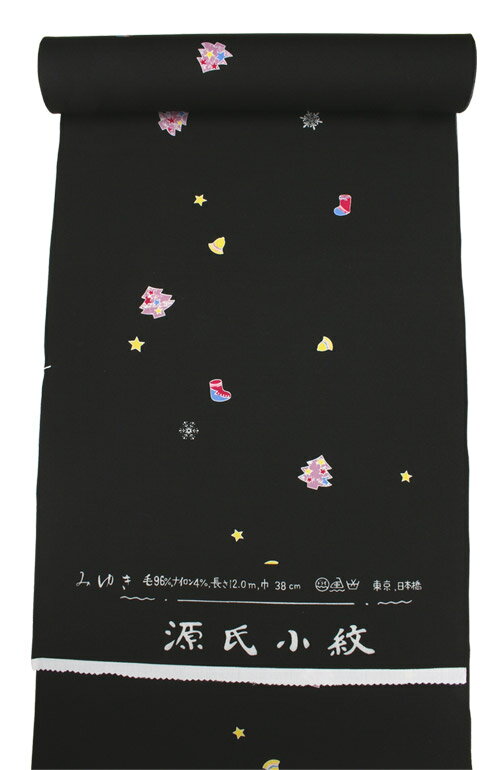 商品仕様 生地 毛96%、ナイロン4% 色 黒、桜色 柄 クリスマスツリー、ソックス、雪の結晶、星など 巾 38cm(裄丈72cm程まで対応可能) 長さ 12m(身長160cm程まで対応可能) お買いものナビ ※こちらの商品は反物での販売となっております。