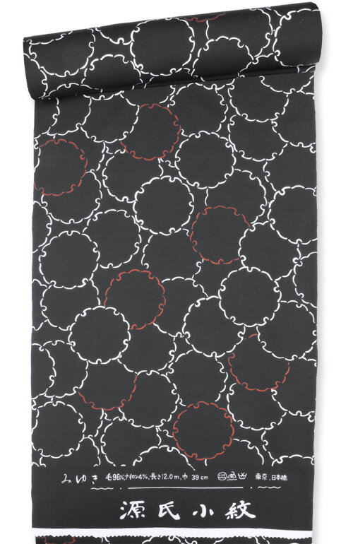 商品仕様 生地 毛96%、ナイロン4% 色 黒、白、朱赤 柄 雪輪文 巾 38cm (裄丈73cm程まで対応可能) 長さ 12m(身長160cm程まで対応可能) お買いものナビ ※こちらの商品は反物での販売となっております。
