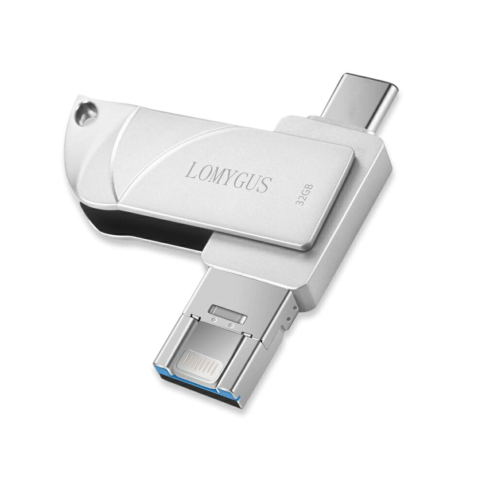 フラッシュドライブ iPhone USBメモリ 日本語取扱説明書付き 両面挿し 360度回転式 iPhone/PC/Android/iPad対応 LOMYGUS 容量不足解消 iPhone/iPad 64GB 32GB 【代引き不可】