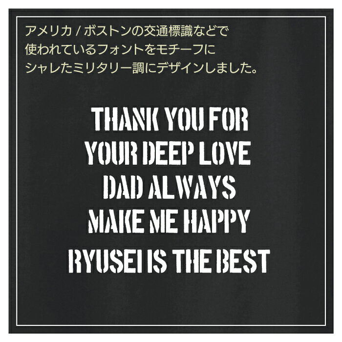商 品 情 報 素 材 ポリエステル65%綿35% ツイル カ ラ ー 4カラー サ イ ズ M・L プリント 高品質マットラバーシート熱転写プリント お父さんありがとうギフト “ミリタリー調デザイン” シリーズの Tシャツとトートバッグはコチラ ↓ ↓ ↓ ********************************************** 誕生日や 父の日の プレゼントに! ミリタリー調デザイン エプロン ********************************************** 料理男子へ…! アメリカ ボストンの交通標識にも使われる ミリタリー調のフォントでデザイン さりげない名入れプリントだから… お父さんからはお洒落で普段使いしやすいと好評! ★